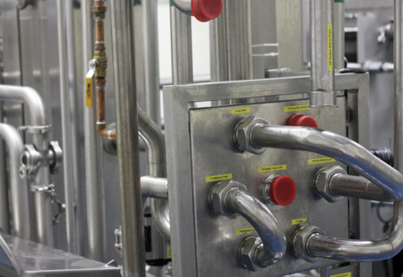 Finally, the butter is transferred to the “boat,” where it changes from a noodle-like state to its final butter form. Consistent back-pressure from the churn facilitates this transformation, achieved by tapering down from the churn to the boat. The boat’s purpose is to build up a consistent butter mass, which is then sent to the fillers for packaging. The butter is packed in either 1 lb rolls or bulk 25 kg cases.