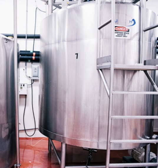 After the cream is pasteurized, our expert butter makers add live bacterial cultures, which is what differentiates cultured butter from traditional sweet cream butter. The cream rests in a vat while thickening, where it develops complex flavor notes of buttermilk and hazelnuts. We ferment the cream slowly overnight to produce the best flavors and aromas. Culturing produces the flavor compound “Diacétyl”, or what we think of as “butter flavor”; this is why traditionally cultured butter tastes extra buttery! Making cultured butter is much like making fine wine, you want to ferment your cream like your grapes, slowly, to produce the best aromas and flavors.